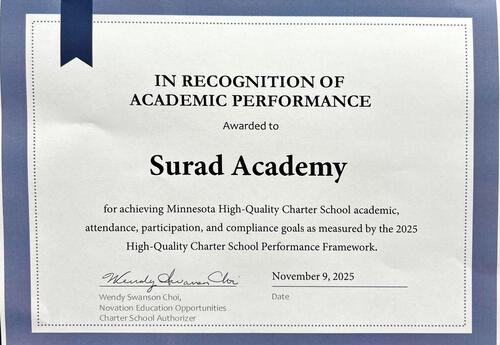 Surad Academy is proud to announce that we has been awarded the Minnesota High-Quality ...
